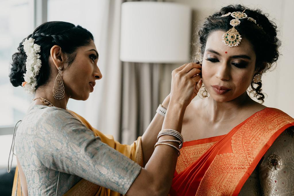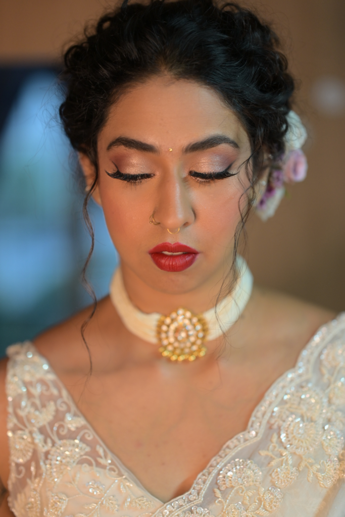 “Dear Sangita, It was such a pleasure working with you for my engagement and wedding. I couldn’t have been happier with the results. Your attention to detail and ability to create such great looks on me that I envisioned for myself (or even better) left me feeling confident and beautiful throughout. You were not just incredibly professional by arriving on time, be exact with details right from the discussion levels but you even ensured I felt comfortable throughout the process. I would forget about any worries related to the ceremonies because you’d keep me so occupied and made me laugh so much through the whole process. You’re so practical and such a perfectionist. The best thing about you is that you would not let me get out of the room if the look wasn’t perfect in your eyes. I received so many compliments on looks through the wedding, all thanks to your exceptional skills! Best MUA ever!!!! I’m so glad I chose you. Apart from all that, you’re a great human being! You did so much more than your artist duties. You’d make sure I eat and be hydrated, help me dress up and what not! More than that, I’m happy I found a great friend in you! Looking forward to working with you again. Love, Sura”